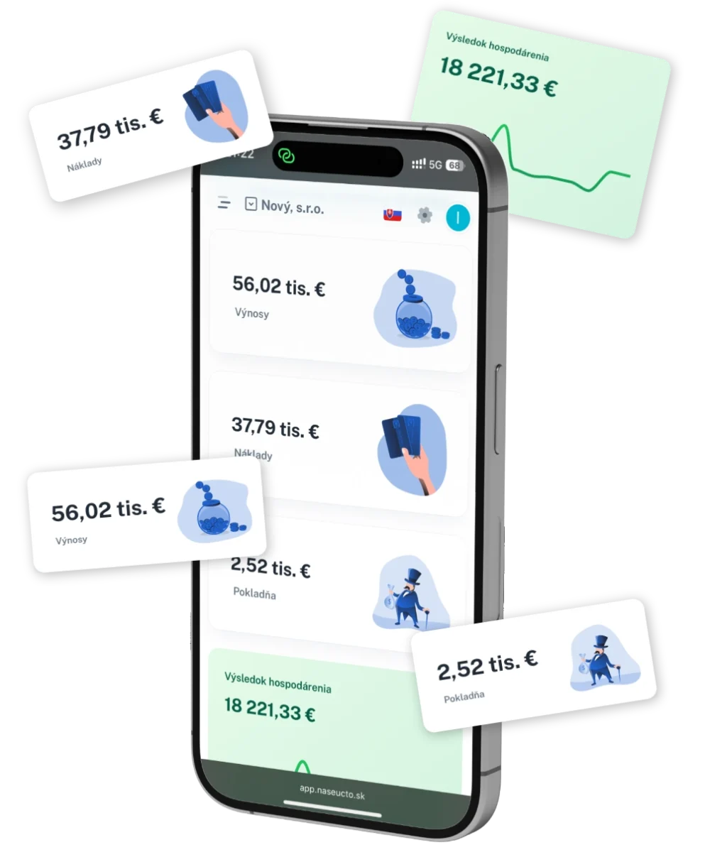 Predstavte si, že si pri rannej káve alebo meetingu otvoríte mobil a hneď viete, ako na tom vaša firma je. Bez volania účtovníkovi, bez čakania na výkazy alebo reporty v exceli. NašeÚčto funguje online a zobrazí aktuálne čísla na mobile, tablete aj počítači. Počet používateľov si nastavíte podľa seba a ak máte viacero firiem, prepínate medzi nimi jednoducho na jednom mieste.